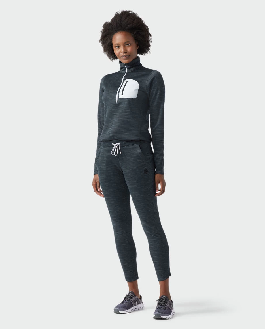 A lightweight stretch fleece recovery pant designed for time outside your tech layers.